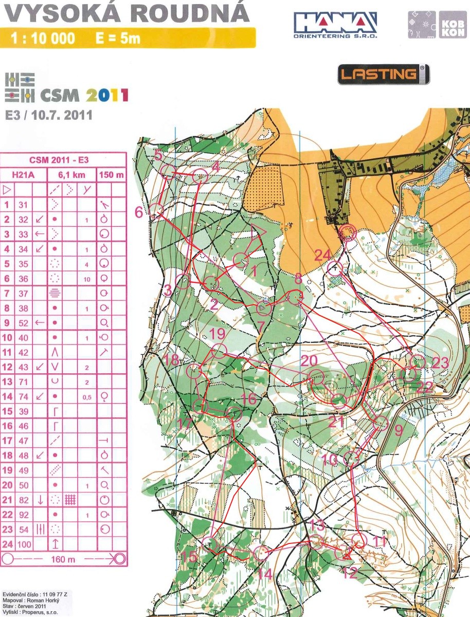 Stejně jako na Advantě se i tady běžela poslední etapa hendikepem, do kterého jsem se tentokrát o pár vteřin nevešel. Stavitel tratě doslova namotal v méně kopcovaté části než předchozí den a asi dal předsevzetí, že všechny kontroly musí být v zeleném, což se mu naštěstí u tří nepovedlo. Při pohledu mapy by mohl vzniknout mylný dojem, že to byl pěkný orienťák. Bohužel nebyl. Úvodních 8 kontrol byl pouze opruz s běháním rovně v zeleném, mapa mi v té části přišla dost slabá a málo detailní. Následoval přeběh 8-15 a konečně opět hustníková smyčka 16-19, která mě bavila o něco víc než ta první. Závěr trati taky nebyl vůbec špatný, hlavně proto, že jsem tam stáhnul (ten závod asi už popáté) borce, který startoval půl minuty přede mnou. Dlouhý finiš na sběrku jsme si rozdali ještě s jedním dřívěji startujícím kolegou, takže jsme alespoň utekli tomu předchozímu. I přes pomalý běh z toho bylo 9. místo v etapě a posun na celkové 10. místo. Janče, startující jako třetí v D21B, bohužel těsně unikla bedna. Pár vteřin za ní startující soupeřka, která byla celý závod ve větším/menším závěsu, totiž využila Jančino zaváhání kousek před cílem a uloupila bronz.